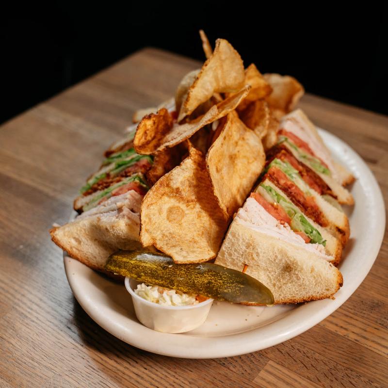 Sandwiches served with a choice of homemade chips or seasoned fries. Lettuce, tomato, onion, pickle, and coleslaw on request.